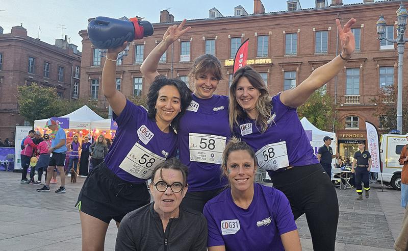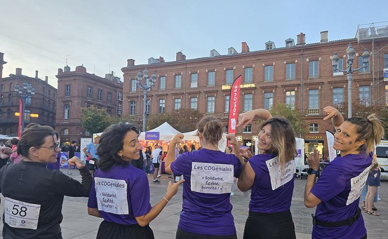 Elle s’est poursuivie par la participation de l’équipe du CDG31, les CDGéniales, à la Nuit des Relais, organisée par la Fondation des Femmes, afin de collecter des fonds au profit de projets à fort impact contre les violences et pour l’égalité femmes-hommes. L’équipe a couru fièrement avec les t-shirts offerts par le SATUC Toulouse Athlé.